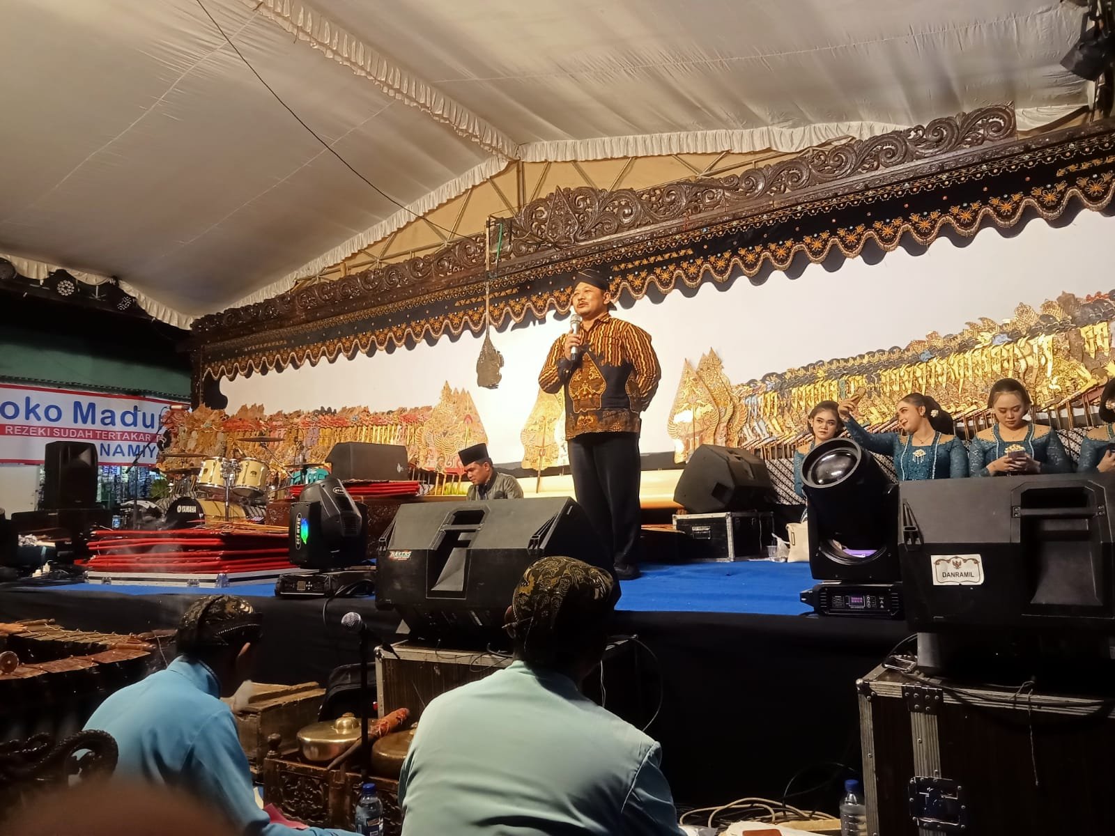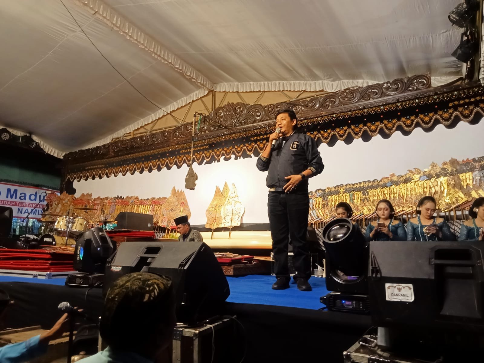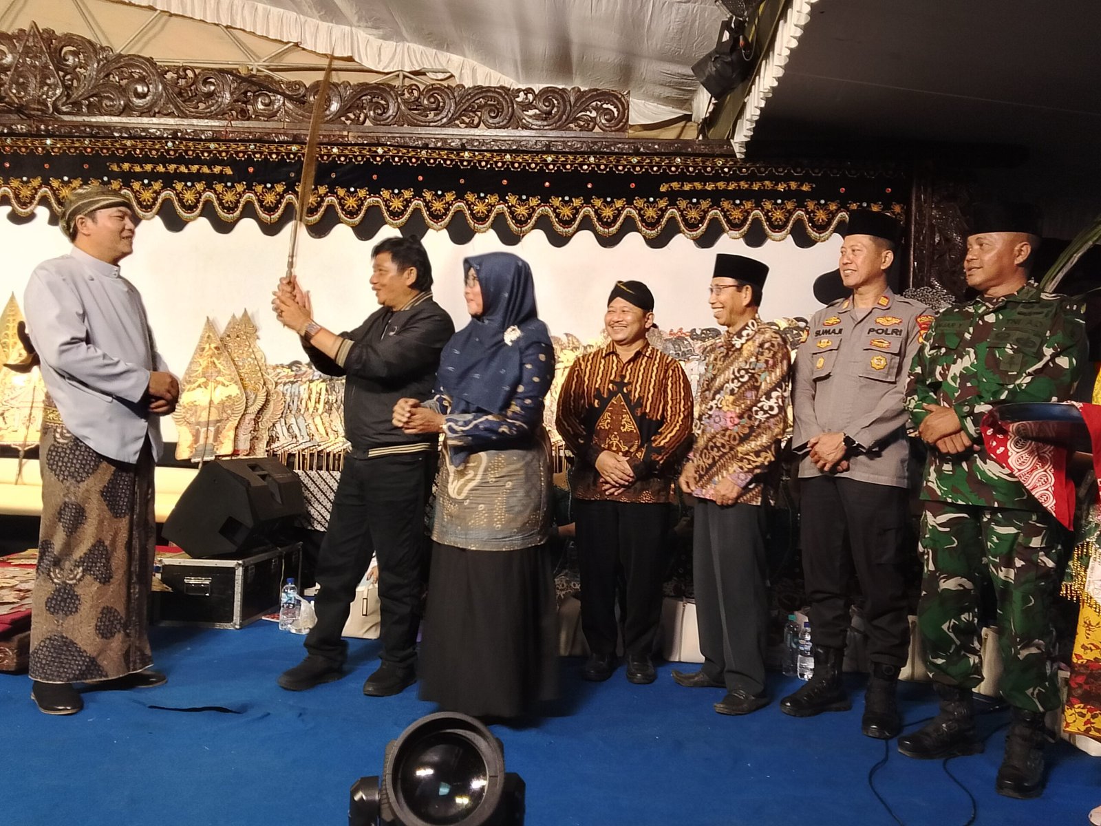 Gelaran wayang kulit sebagai penutup acara tampak dihadiri oleh sejumlah tokoh penting, menunjukkan dukungan dari berbagai pihak terhadap kegiatan desa.