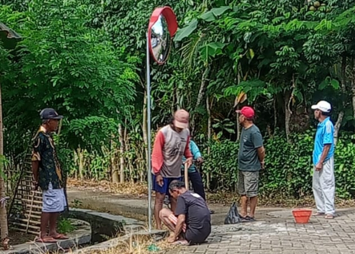 TRENGGALEK,Kabarnews.net – Kesadaran akan keselamatan berkendara ditunjukkan secara nyata oleh warga Dukuh Jatimalang, Desa Ngulanwetan, Kecamatan Pogalan, Trenggalek. Guna menekan angka kecelakaan lalu lintas yang kerap terjadi, warga bersama tokoh masyarakat (Tomas) setempat bergotong-royong memasang kaca cembung (convex mirror) di titik rawan, Sabtu (07/03/2026).