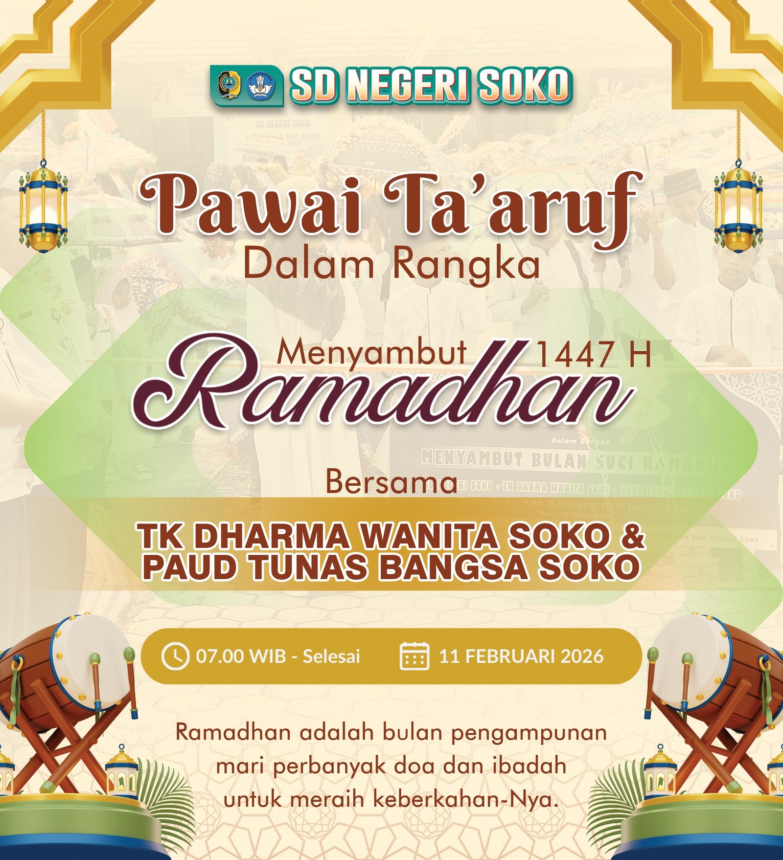 Acara ditutup dengan doa bersama di halaman sekolah, menandai kesiapan seluruh keluarga besar SDN Soko untuk memasuki bulan suci dengan hati yang bersih.