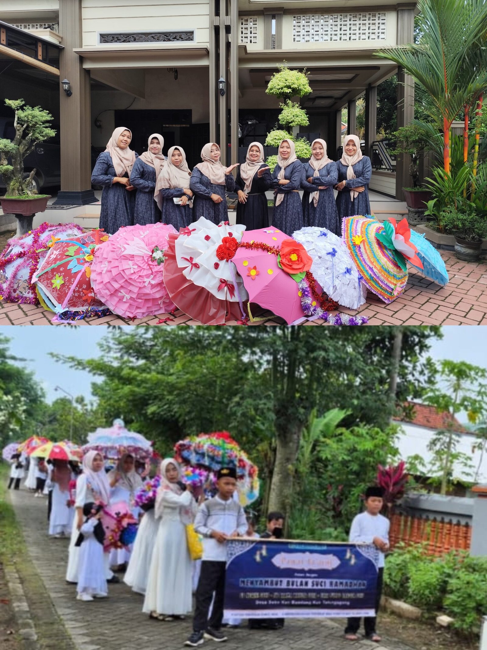 Para peserta tampak antusias mengenakan busana muslim dan membawa berbagai atribut kreatif, mulai dari poster ucapan selamat menunaikan ibadah puasa hingga replika bernuansa islami, yang menambah semarak iring-iringan di sepanjang rute desa.